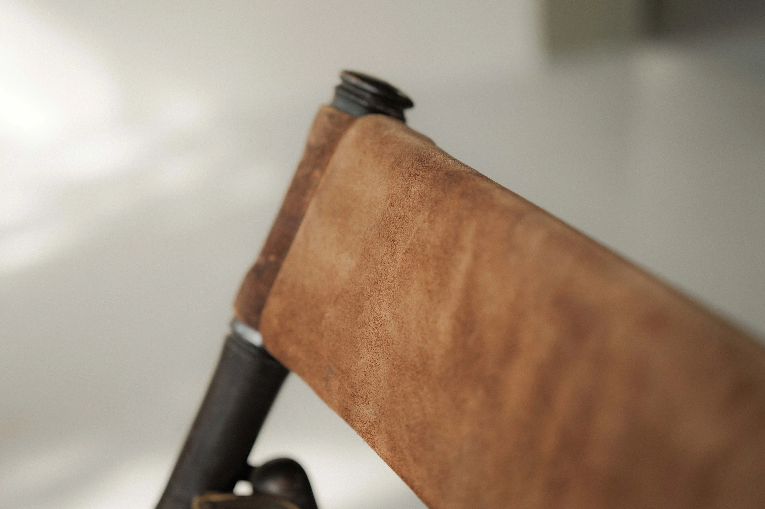 Paire de chaises pliantes, bois massif et daim, circa 1950