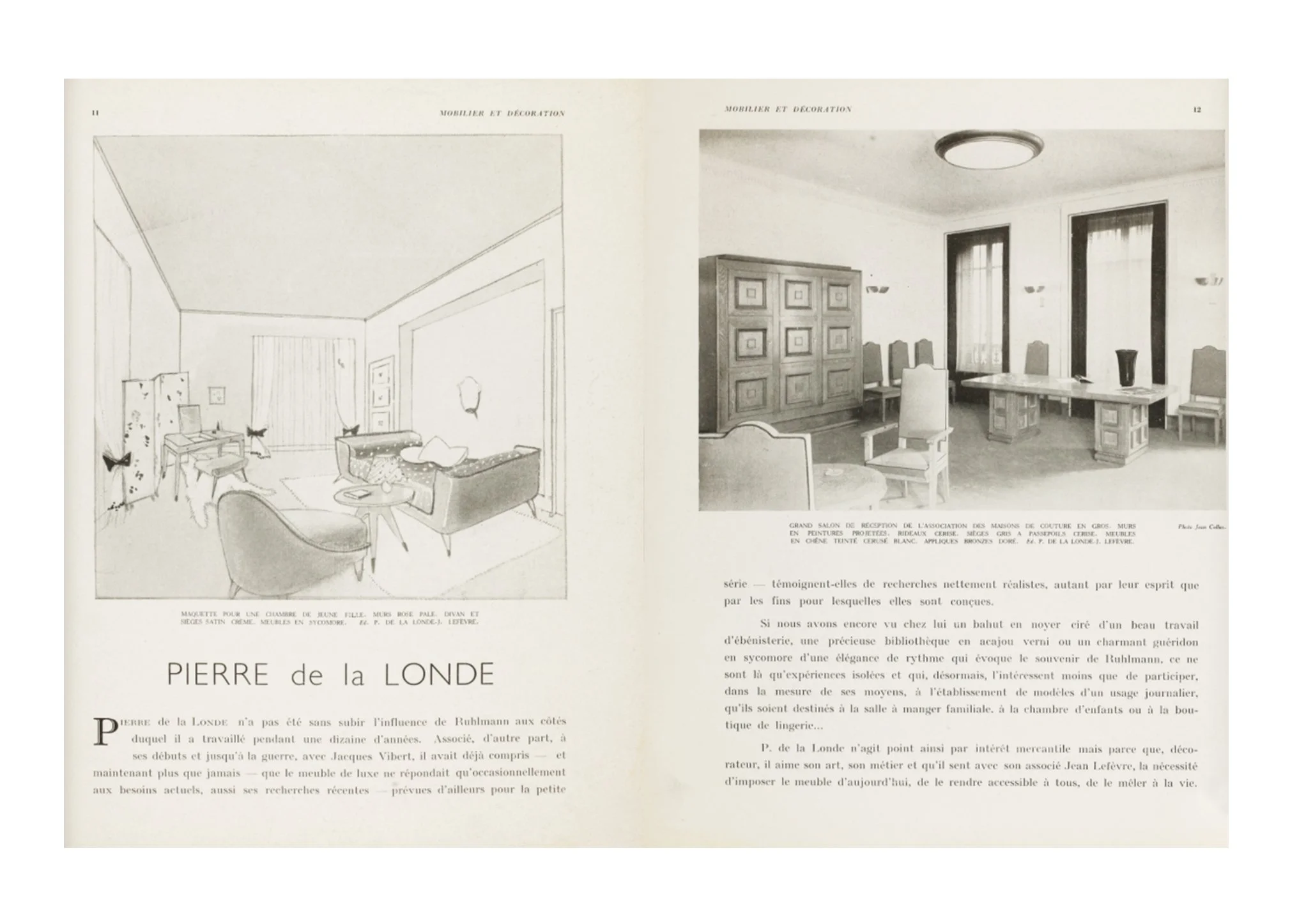 Ces chaises sont de Pierre de La Londe (ancien collaborateur de Jacques-Émile Ruhlmann) et son associé Jean Lefèvre. Elles témoignent de la période de reconstruction et du retour à une esthétique sincère et fonctionnelle, entre tradition artisanale et modernité mesurée.